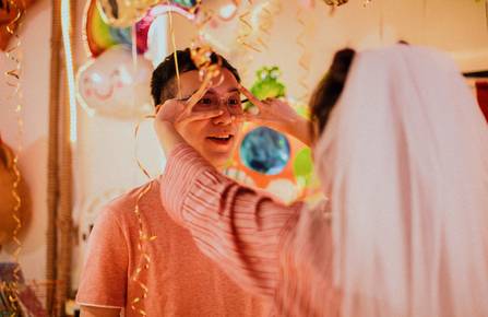 拍摄室外婚纱照,为了与自然环境相融合,有些新人会选择颜色艳丽的婚纱和礼服。事实上,衣着配色并不是越鲜艳越好,如果衣着过分抢目,反而会盖过新人的光芒。一般情况下,暖色系的礼服穿起来会显得更为协调,但它并不适用于所有的新人,选择婚纱礼服的色彩因人而异,一定要确保婚纱或礼服能呈现出新人的风采。