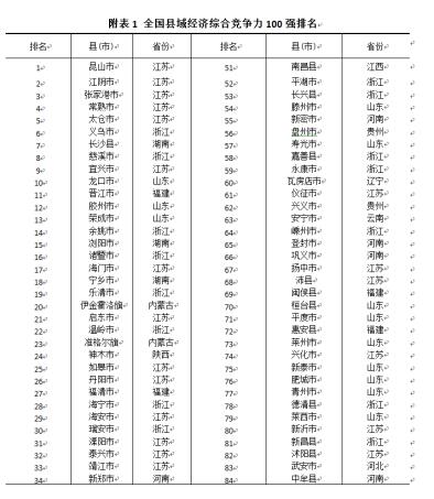 《报告》中包括两个榜单,即全国县域经济综合竞争力100强排名和全国县域经济投资潜力100强排名。