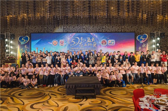 大汇堂董事长胡春龙、总经理胡春腾、胡春龙父亲胡国柱以及大汇堂老板家人们共同出席2018年9月13日"香江五载.龙承狮爱"广东狮子会香江服务队2018-2019年度就职典礼暨五周年感恩慈善晚会。