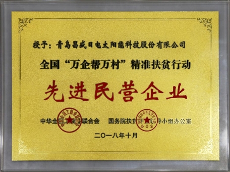 自2011年,公司重点研究光伏与农业的高效结合,采用棚顶发电、棚下种植,成功探索出光伏+农业、光伏+渔业、光伏+牧业等多种发展模式。在全国成功布局100多个千亩以上的光伏农业园区,园区面积逾10万亩,已投运6.9万亩。依托全国上百个光伏农业园区,公司实施“造血式”精准扶贫,为农村提供就业岗位,带动贫困户脱贫致富。2016年7月,习总书记视察昌盛日电银川光伏农业园区时,对公司的“光伏+农业+扶贫”模式给予高度评价。2018年10月,公司荣获“全国‘万企帮万村’精准扶贫行动先进民营企业百强”称号。