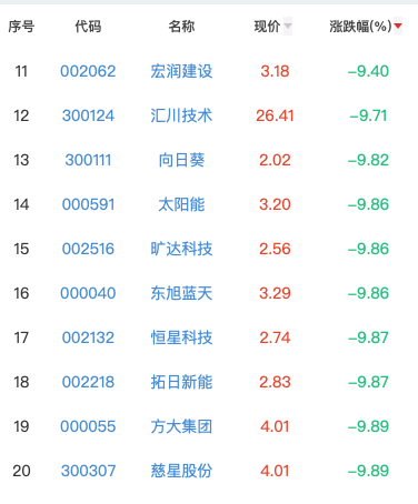 节后首个开盘日:146只光伏概念股几近跌停