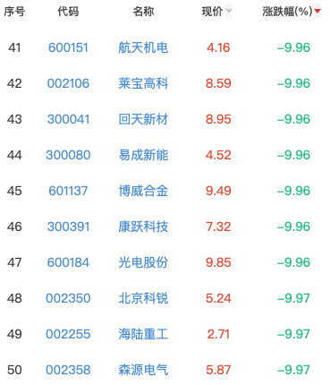 光伏概念股同样难以幸免。同花顺财经数据显示,光伏板块下跌9.7%,146只光伏概念股全线下跌,141只股票跌停,最小跌幅为隆基股份,下跌3.62%。