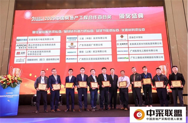(三雄极光荣获2020中国房地产工程合作百合奖“优质材料供应商”)