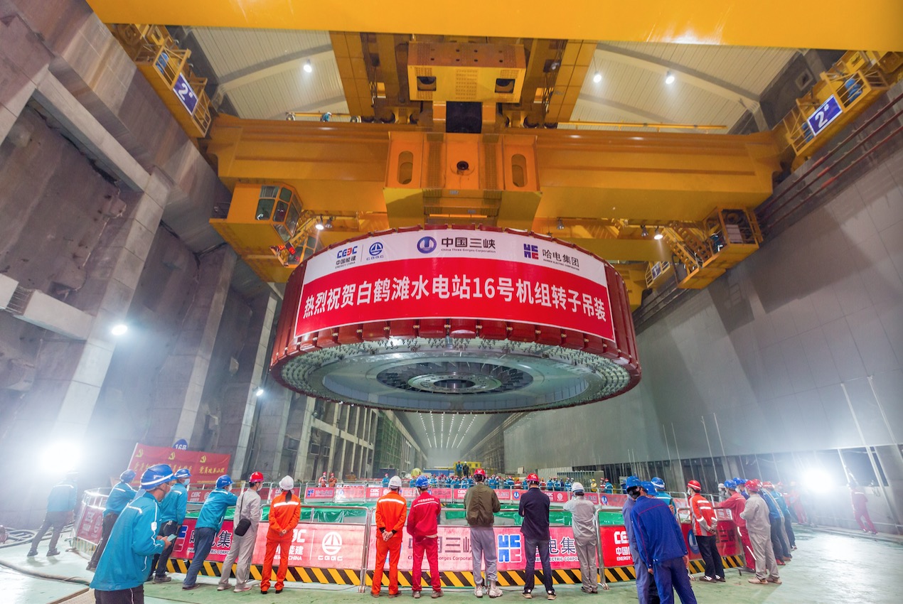 白鹤滩水电站右岸首台百万千瓦机组转子成功吊装