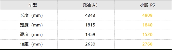 【图注:奥迪A3与小鹏P5空间力对比】