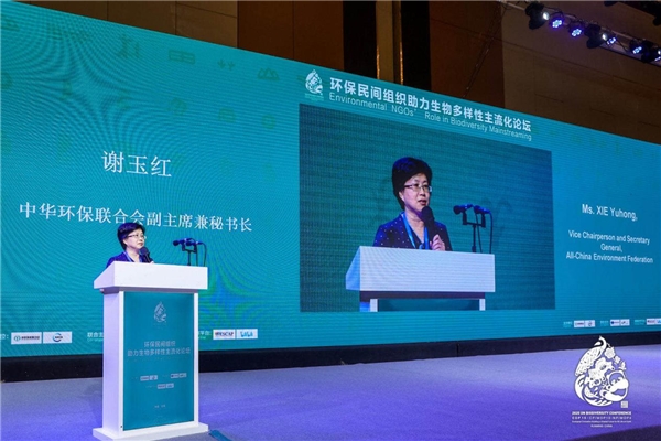 由中华环保联合会和世界自然保护同盟共同主办的“环保民间组织助力生物多样性主流化论坛”于27日非政府组织论坛开幕当天举办。论坛主题演讲由中华环保联合会副主席兼秘书长谢玉红主持。
