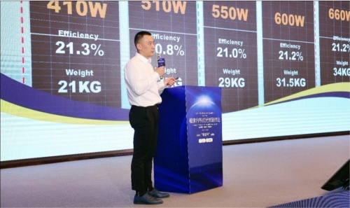 据他介绍,东方日升210+P型泰坦系列组件采用MBB、无损切割、半片封装等领先技术,拥有550W+超高功率和20.8%~21.3%+超高效率;其低开压特点显著增加组串功率,有效降低LCOE。泰坦系列专为分布式打造410W、550W、600W产品,整体方案完美匹配分布式复杂应用场景。