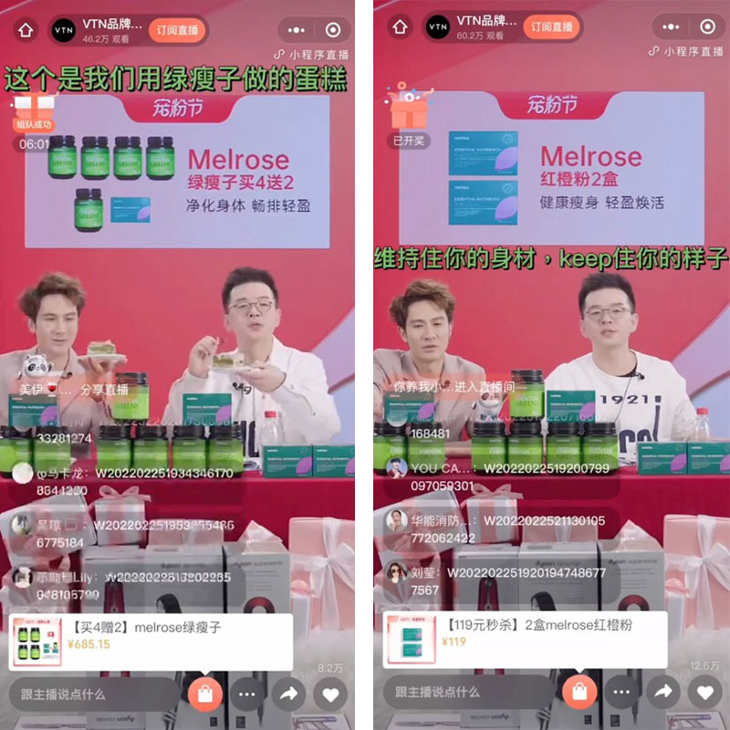 本次直播,Melrose麦萝氏兑现宠粉承诺,以空前的优惠力度推出宠粉心选、惊喜秒杀、0元付邮试用、最高3990元互动好礼等重磅福利,不仅如此,Melrose麦萝氏现场还与观众探讨了全民关注的健康瘦身知识,直播中,营养输出不断,打造了一场极具氛围感的直播活动。