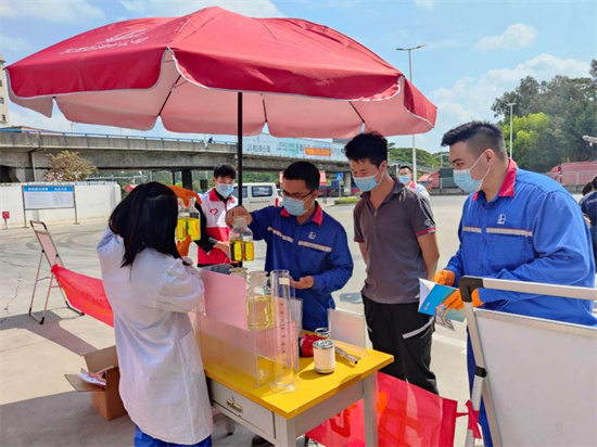 (通讯员:袁潇、张来映、龚洪峰)“原来车用油品是经过层层把关后加注到我的汽车油箱中呀!今天通过你们的解说,明白了加油机显示加油数大于车辆油箱标定容量的原因,掌握了油量指示表并非计量器具,无法定量显示油量,只能反映剩余油量的多少!非常感谢你们,以后加油,我更加放心了!”这是顾客邹先生在中国石化销售股份有限公司广东东莞石油分公司(以下简称“东莞石油”)大塘朗加油站正在开心的向现场宣传人员表示感谢。