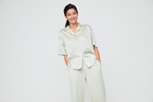 以“爱”、“美”、“生命力”为品牌定位的爱慕,深度洞察当代智美女性对于满足身心健康的环保产品需求。22SS丝润II系列家居服,选用兰精旗下零碳排天丝™品牌纤维Carbon Zero TENCEL™ fibers拼接健康润肤的真丝面料,天然无刺激兼具抗螨功能,清爽明亮的色彩搭配简约休闲的设计,让家居服更具时尚感,打造兼顾内与外的精简穿搭体验。
