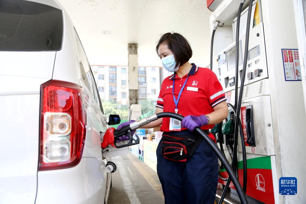 9月6日,在江苏省连云港市一加油站,工作人员给汽车加油。新华社发(王春 摄)