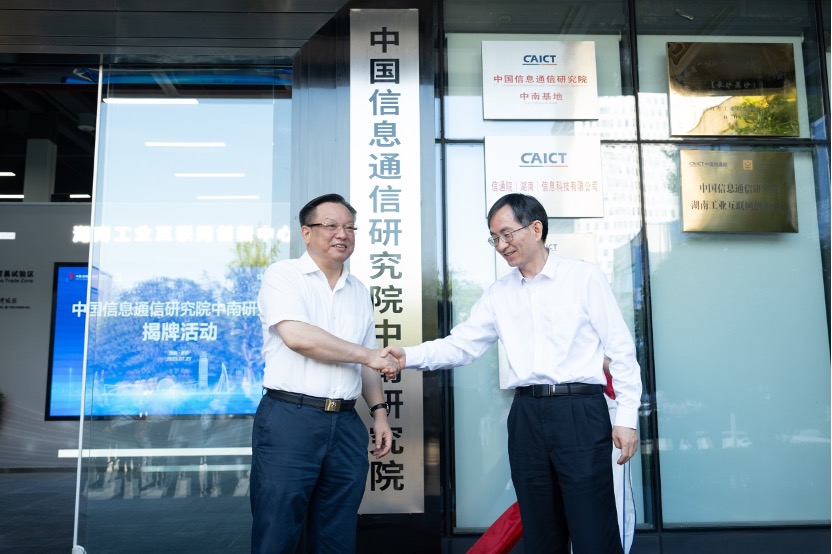 7月27日,中国信息通信研究院中南研究院(以下简称“信通院中南院”)在长沙经开区揭牌成立。湖南省工业和信息化厅党组书记、厅长雷绍业,中国信息通信研究院院长余晓晖出席活动并揭牌。长沙经开区党工委书记、长沙县委书记付旭明主持。长沙经开区管委会主任张庆红,区管委会副主任赖坤明出席。