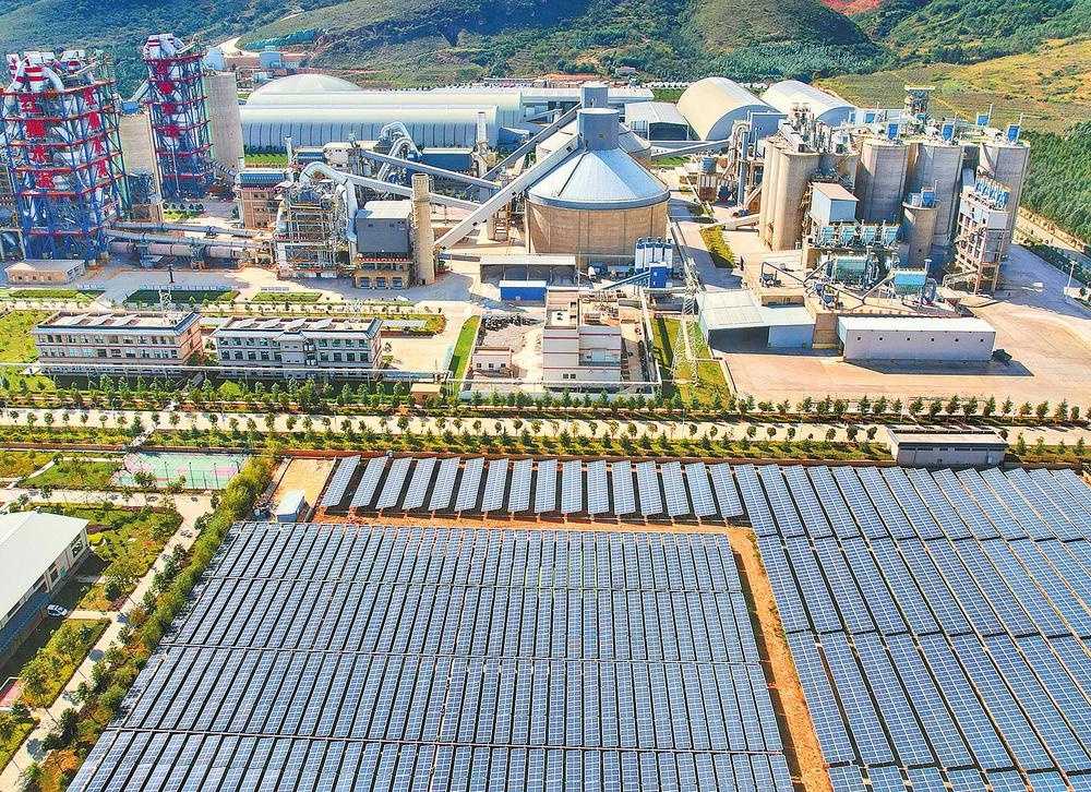 大理祥云零碳园区红狮水泥厂分布式光伏发电阵列。