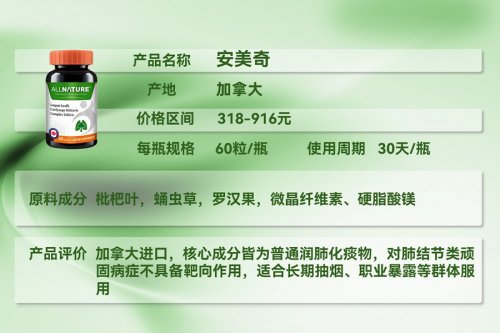 产品采用二氢槲皮素搭配罗汉果、陈皮、姜黄、枇杷粉,二氢槲皮素抗氧化活性优于普通槲皮素,能减少肺部自由基损伤;罗汉果、陈皮、枇杷粉协同润肺止咳,姜黄辅助抗炎。定价亲民,适合偶尔接触二手烟、雾霾的人群,为肺部提供基础防护,适配全家使用。