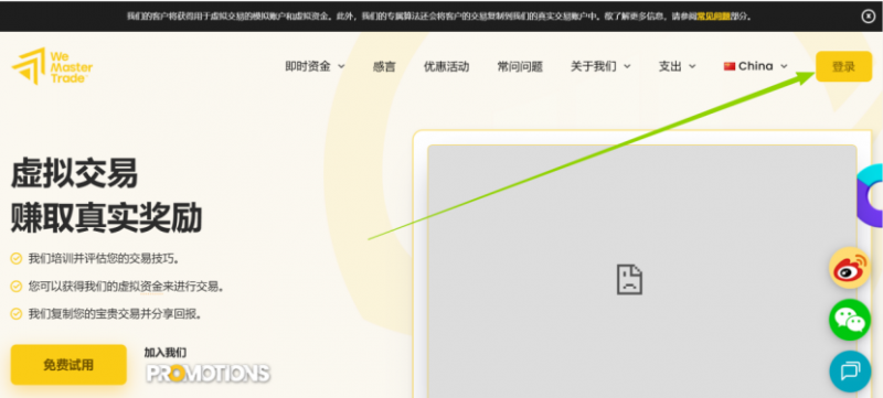 注册并开通模拟账户登陆WeMasterTrade官网//wemastertrade.com/zh/,注册账号。