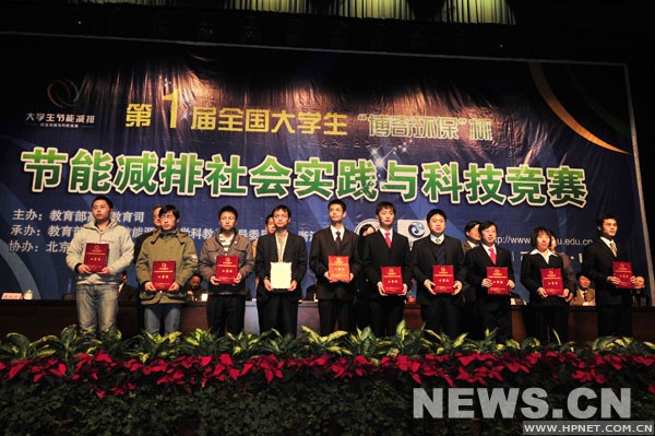 12月6日,在浙江大学举行的“全国第一届大学生节能减排社会实践与科技竞赛”决赛上,华中科技大学能源学院学子设计的《用于监控摄像机的太阳能半导体制冷系统》,代表湖北省参赛并夺得了特等奖。由该校提交的《模块化减速带发电系统》夺得了大赛一等奖。另外,在初赛中有三项作品获得三等奖,两项作品获得优胜奖。