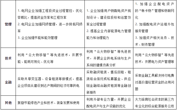 降低企业电力运维及相关资金成本可主要采取以下两类措施:一是开展采取市场化方式,将企业的电力运维和供电保障服务交给专业公司;二是采取金融工具解决预付电费对高价值经营资金的占用。