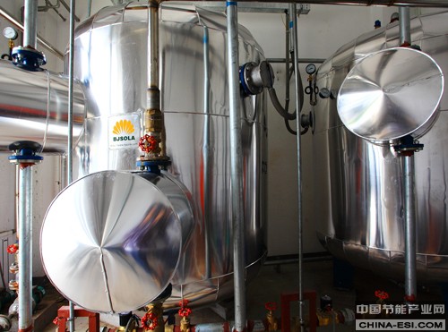 根据项目实际情况,索乐阳光设计整个项目每天用水量30吨,三处太阳能热水系统均为承压式二次换热系统。同步欧美太阳能系统技术,采用 U 型管集热器、太阳液强制循环换热,储水设备为闭式承压水罐,减少细菌产生;无需增压设备,出水压力接近市政自来水压力。