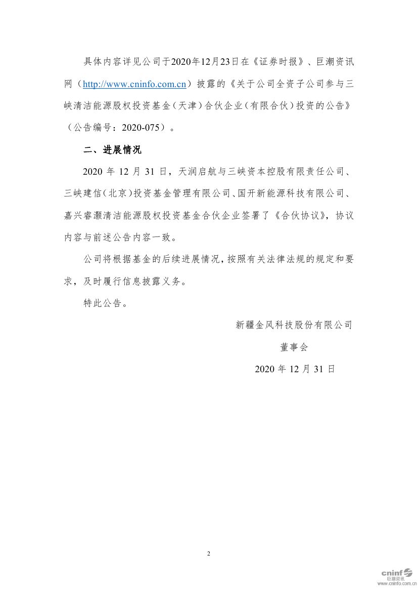 北极星风力发电网获悉,金风科技于2020年12月22日审议通过了《关于天润启航投资管理有限公司作为有限合伙人向三峡清洁能源股权投资基金(有限合伙)出资及新设基金管理公司的议案》。