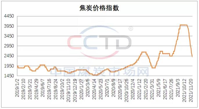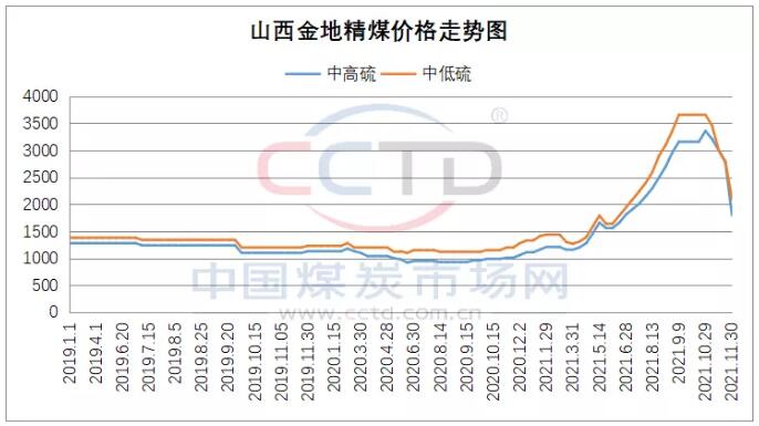 与焦炭上涨的逻辑不同,这次焦煤价格大幅下降,是受到三个方面的影响:一是国家政策出手打压电煤价格至合理回归,不到一个月的时间就从2300多元下滑到900多元,尽管国家对焦煤并没有实施价格监管,但在政策的引导下,钢厂限产、焦化限产,需求快速下降,焦煤的价格中枢也随之下移;二是焦炭价格8轮降价1600元,受此拖累直接把焦煤价格给拉了下来。焦炭之前的上涨是焦煤价格不断推动的结果,成本推动焦炭成本大幅上升,价格随之高举。而这次焦煤价格回落,却是焦炭价格走低,拉低了焦煤价格,通俗讲就是焦炭压着焦煤走;三是期货市场巨幅下挫,现货价格快速跟进。焦煤2201合约从10月19日的最高点3878元,至2021年12月6日下午收盘2058元,巨幅下降1829元或46.9%。目前焦煤价格以临汾为代表的低硫主焦煤也从4600元下降至2400元,几乎被腰斩。