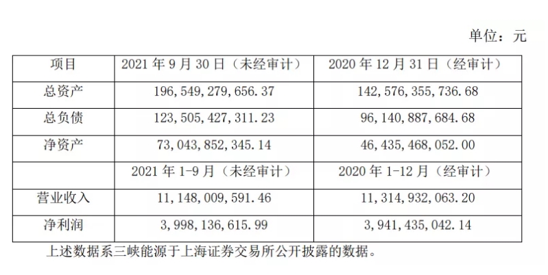 三峡能源成立于1985年9月,为中国长江三峡集团有限公司的子公司,主营业务为风能、太阳能的开发、投资和运营等。最近一年一期的主要财务指标如下: