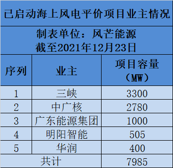近8GW海上风电平价项目已正式启动!三峡、中广核等领衔发展