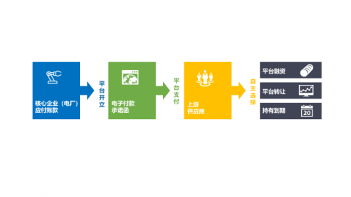 只要和华能集团这样的核心企业有交易行为的公司,就可以注册成为平台用户,从而享受华能集团的信用,通过平台获得资金方的融资。融资以能信票据的形式兑付,该票据具有可拆分、可流转、可批量操作的特点,使用起来更加便捷、灵活。如果供应商急需回笼资金,拿到能信票据后,可以立即找平台保理公司或者其他资金方,根据约定进行全部兑现,也可以部分兑现,或将票据流转给其他供应商。