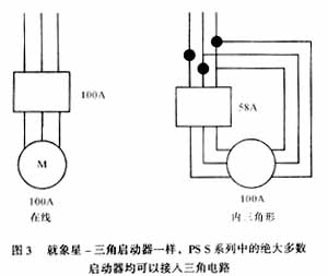 这种系列的启动器适用于大型电动机,且安装和适应性更强。该系列启动器适用于额定电流为18~300A的电动机,由于它们可以象星-三角启动器一样接入三角电路(图3),适用电流最高可达515A。这一特性使其能够比任何同类产品都更容易替代现有的星-三角启动器以实现更为平稳的启动(和停机)。