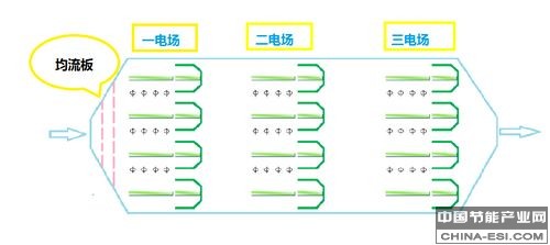 3.4、在出风喇叭口,采用阻力为10-15pa的高效滤网,取代原有阻力大于50pa的两排重叠的钢槽形挡板,并增设振打清灰装置,使该处既大幅度降低了阻力,又可提高除尘效果,因此采用在各电场末端增设高效滤网后,电除尘器整体阻力基本不变。在采用导电滤网改造或新设计的电除尘器时,均可优化选择除尘效率和设备阻力的合理参数,有利发挥其更大的技术优势。