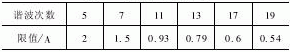 变频器输入电流中偶次谐波和3倍次谐波含量很小,一般都远远低于国标,因此本文主要以分析输入电流中的5,7,11,15,17,19次谐波电流为例。根据国家标准GBT14549—93《电能质量公用电网谐波》和GB12668.3—2003《调速电气传动系统产品的电磁兼容性标准及其特定的试验方法》,公共连接点(PCC)的谐波电流限值与电源短路电流和最大基波负载电流之比相关。在基准短路容量下各次谐波电流允许值如表3所示。